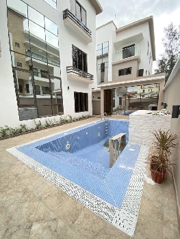 This exquisitely finished 5 BEDROOM FULLY DETACHED DUPLEX WITH SWIMMING POOL, PRIVATE ELEVATOR AND 2 ROOM BQ is located in a secured estate and features 2 spacious living rooms, spacious compound, interlocking concrete floor, swimming pool, private elevator, all rooms en-suite, balconies, fully fitted kitchen, ample parking, spacious master bedroom with oversized walk-in closet, inbuilt sound system, modern toilet wares, jacuzzi, water heaters, water treatment and 2 room service quarters.